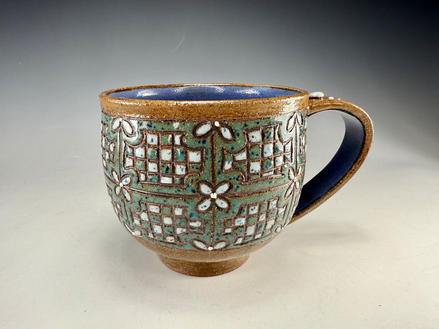 "Checks in Bloom" Stoneware Cappuccino Mug