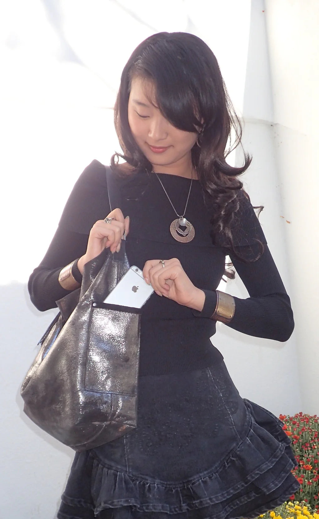 • Outer cell phone pocket (3.75"W x 6.75"D) with rivet detail