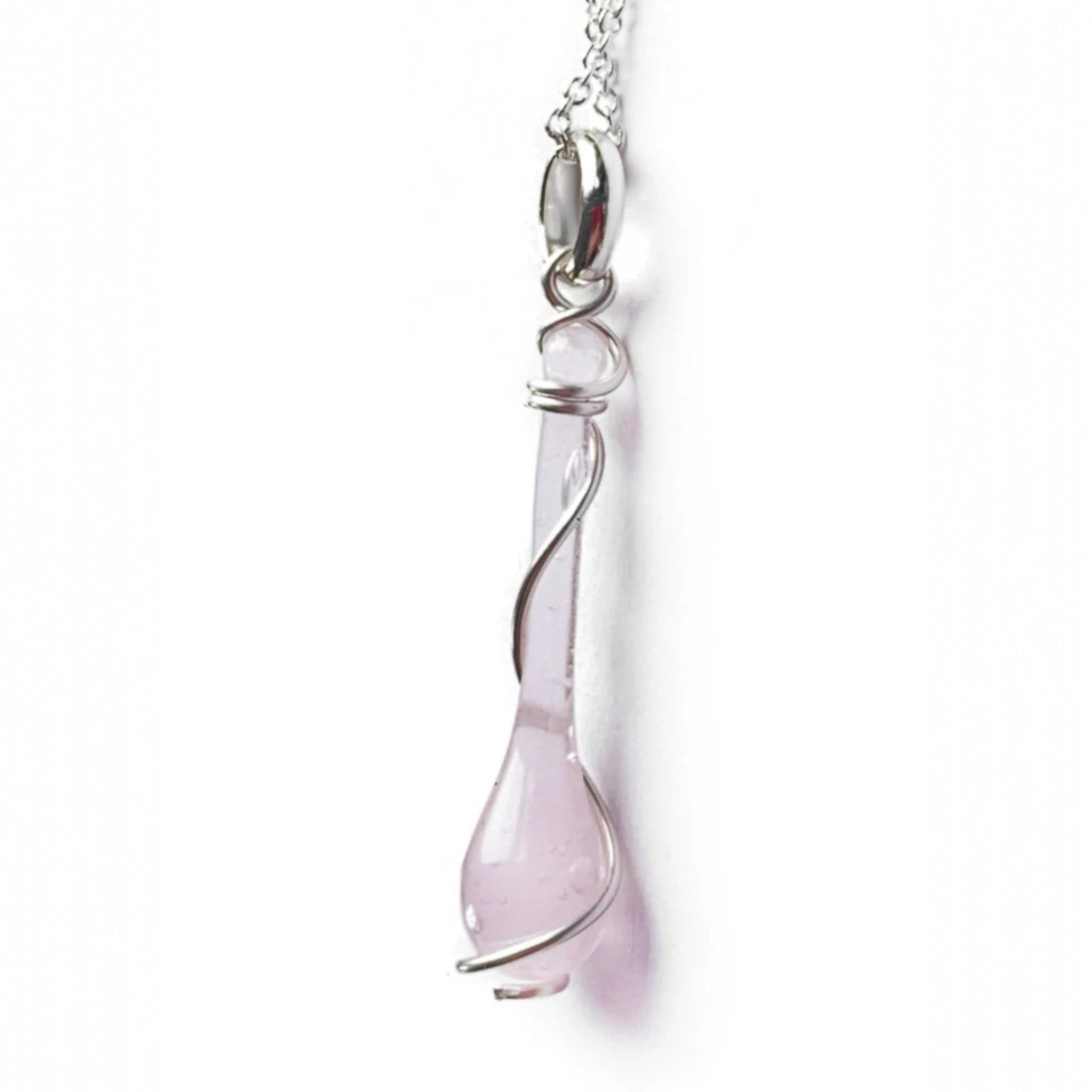 Argentium silver twines around a drop of vivid glass in this delightful pendant necklace, hanging on an Argentium silver cable chain. You’ll love this twist on elegant simplicity - a single drop of sun-melted glass, wrapped by hand with a silver spiral. No two pieces are exactly alike. You are unique and original - your jewelry should be too!