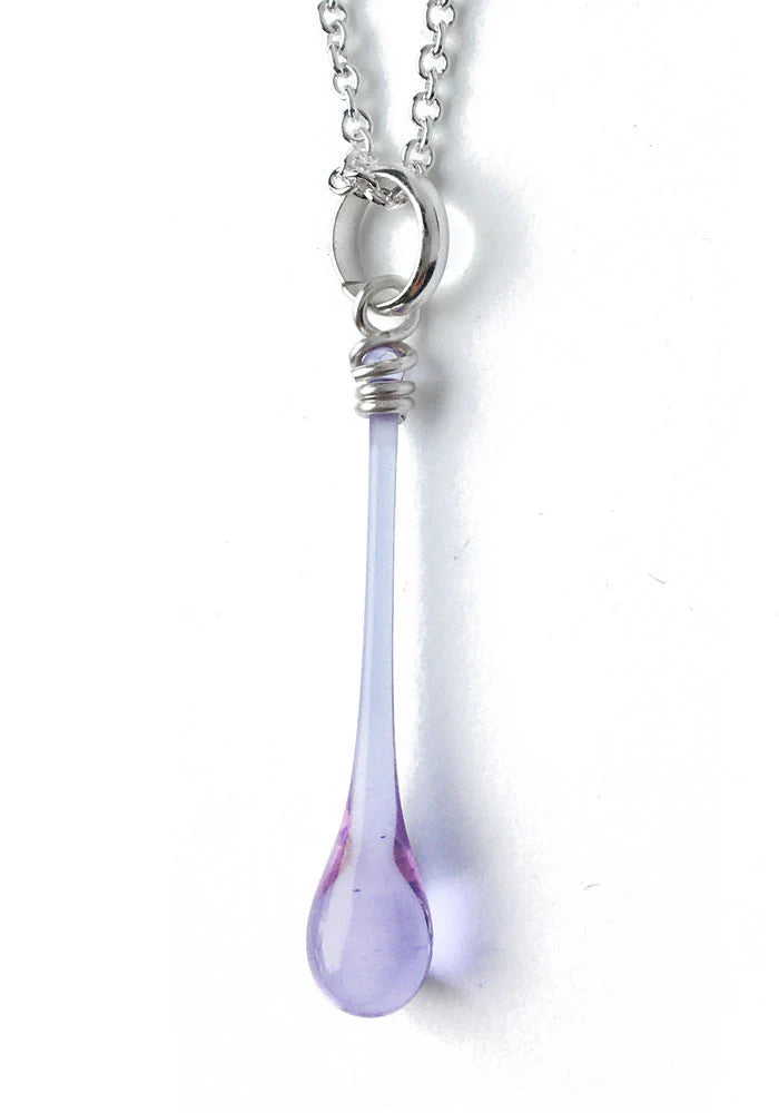 - Droplet length: 3/4" - 1 1/4" (1.9 - 3.2 cm), hanging from an 18", 20", or 24" chain of recycled sterling silver