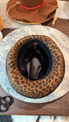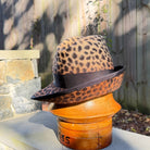 - Leopard print 100% hare fur felt with grosgrain ribbon hat band and brim trim
