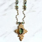African Tuareg Cross w/ Aqua Glass Jewel Necklace