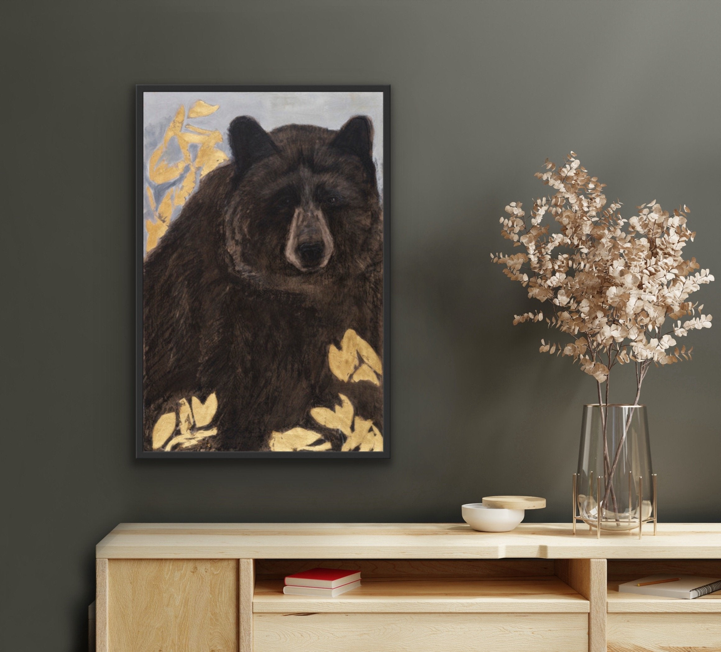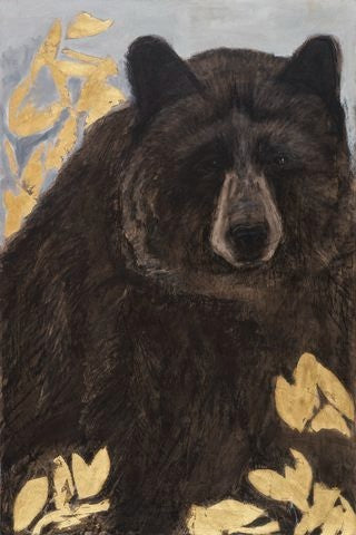 "Honeycomb" Bear Cub Oil Painting w/ Silver Leaf