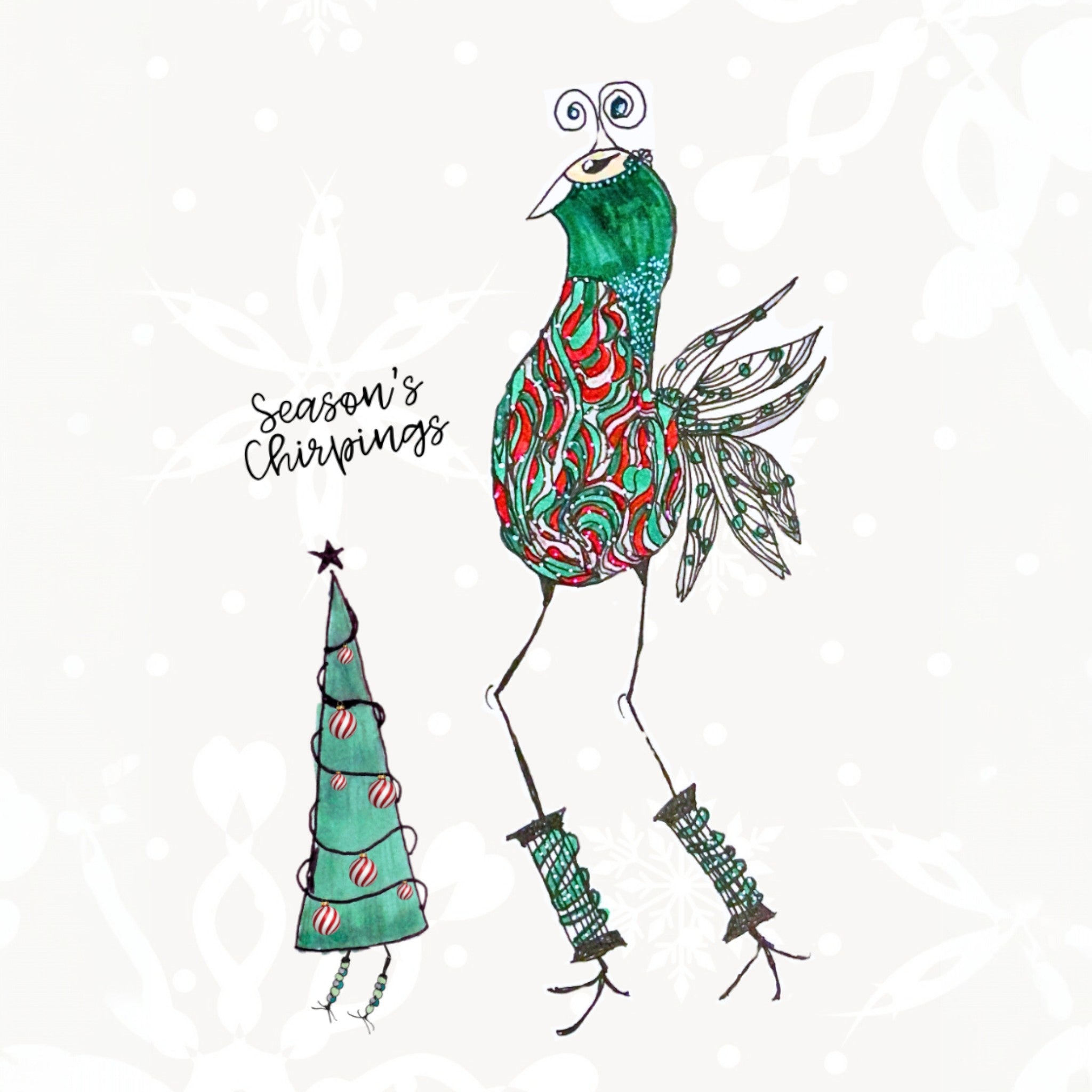 "Peppermint Twins" Season's Chirpings Greeting Card