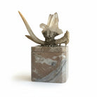 Marble Treasure Box Embellished w/ White Tail Deer Antler, Quartz Crystals & Silver