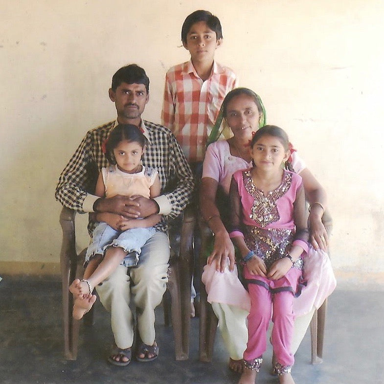 An elegant chime shaped to portray a slender vine, with five desert bells. Approximately 18" in length. Handmade by Janmamad Luhar and his family in the Kutchchi desert region of western India.