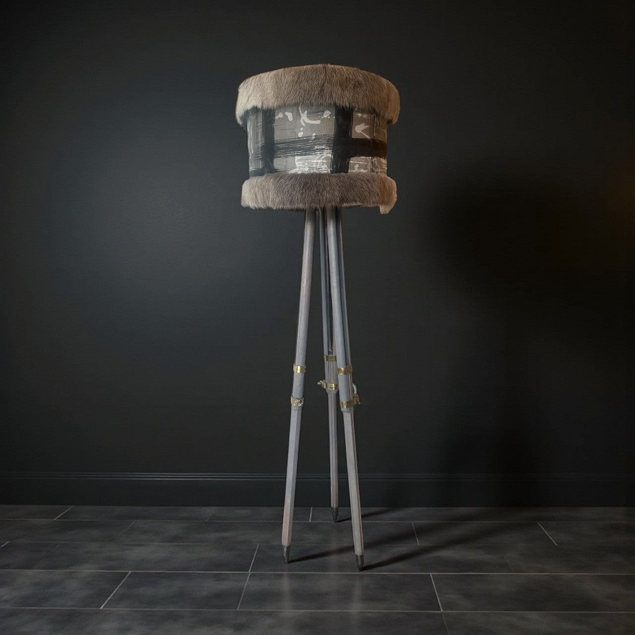 Once a working surveyor’s tripod, this vintage beauty has been thoughtfully transformed into a one-of-a-kind floor lamp. The gray-washed wooden legs paired with brass adjustment clamps bring a refined industrial charm to your space. Height-adjustable and compatible with either Euro-fit or harp-and-finial shades, it’s a sculptural piece that anchors any room with quiet, collected style.