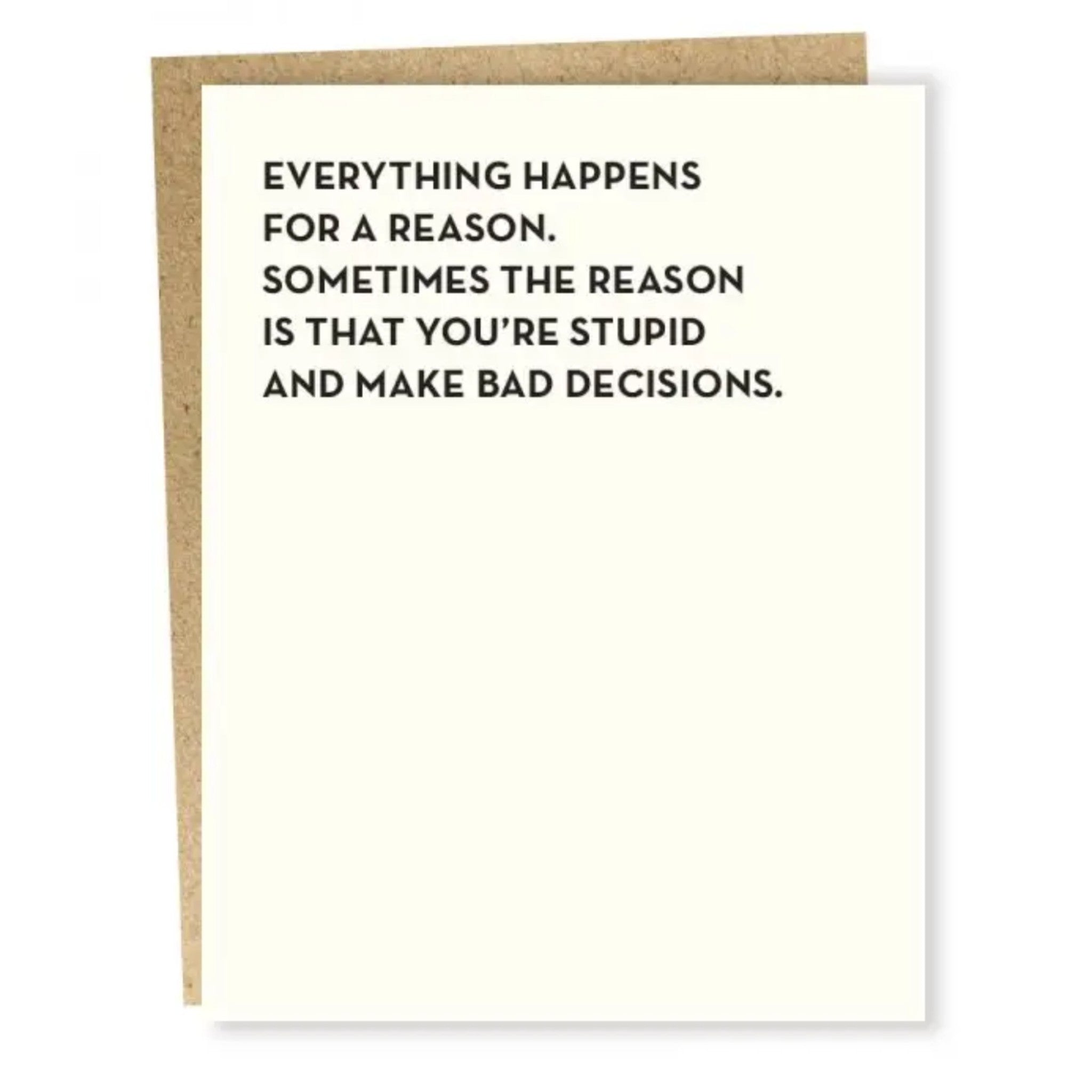 “Everything happens for a reason. Sometimes the reason is that you’re stupid and make bad decisions.”