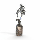 Chandelier crystals embellish a mercury glass base with soldered silver for your purely decorative pleasure! One-of-a-kind.