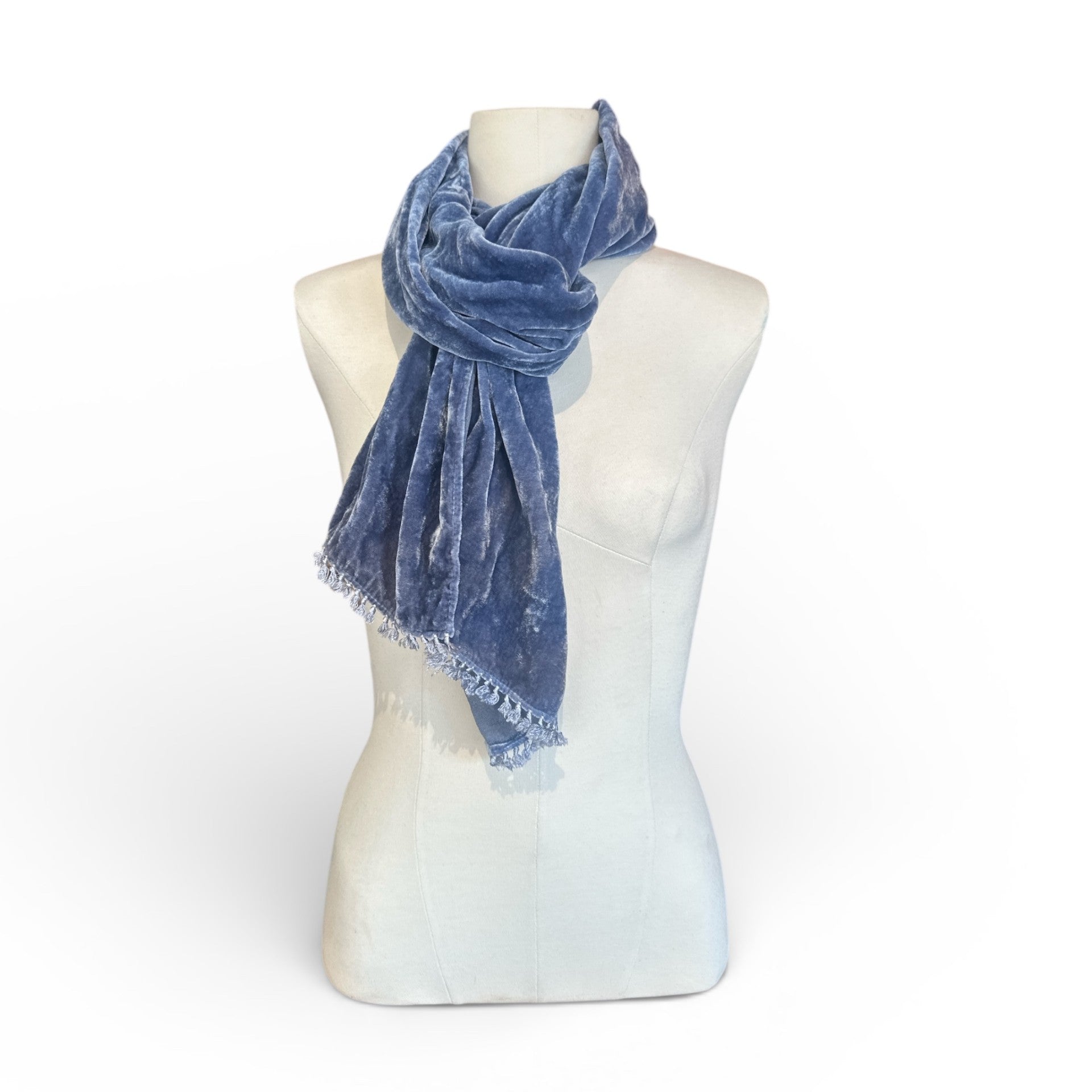 Hand-Dyed Silk & Rayon Scarf w/ Eyelash Fringe | Moonlit Periwinkle