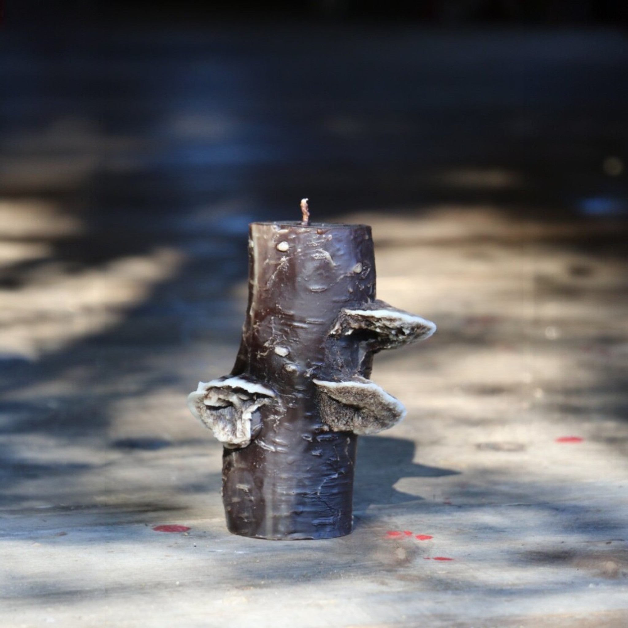 Our 72 Hour Birch Pillar Candle is Cast from the same cutting as the 150 Hour Pillar. Like the Full-Size Pillar, it has Three Painter's Fungi, a Voided Branch Node, and a Compound Curve.