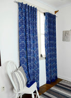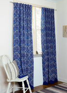 We love traveling and around the corner of every place are hidden shapes and lines that lead us to create. This Circle and diamond design is inspired by a door from the Grecian islands. The print went through a multiple printing process. Starting with printing a mud resist for the big circle, then dyeing it in light indigo, and then printing mud resist again for the diamond shape, then dyeing it again in dark indigo to create the multiple color dazzle!
