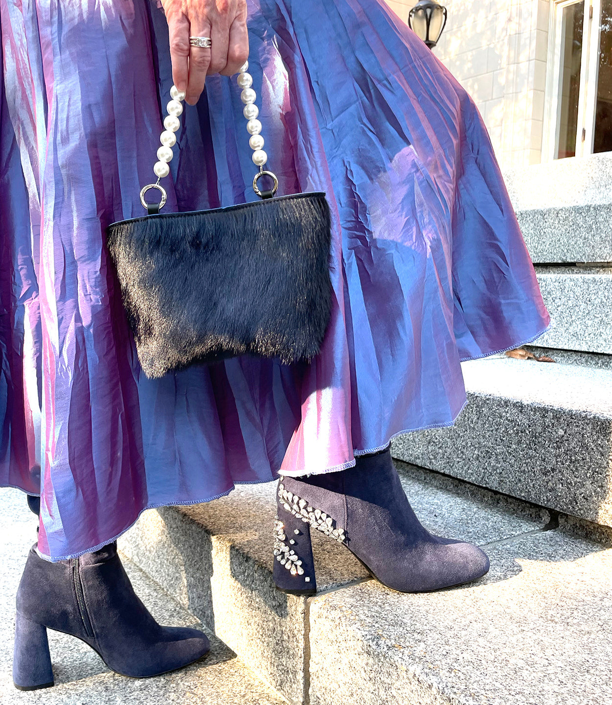 Midnight Sparkle w/ Italian Navy Fur Flap Handbag