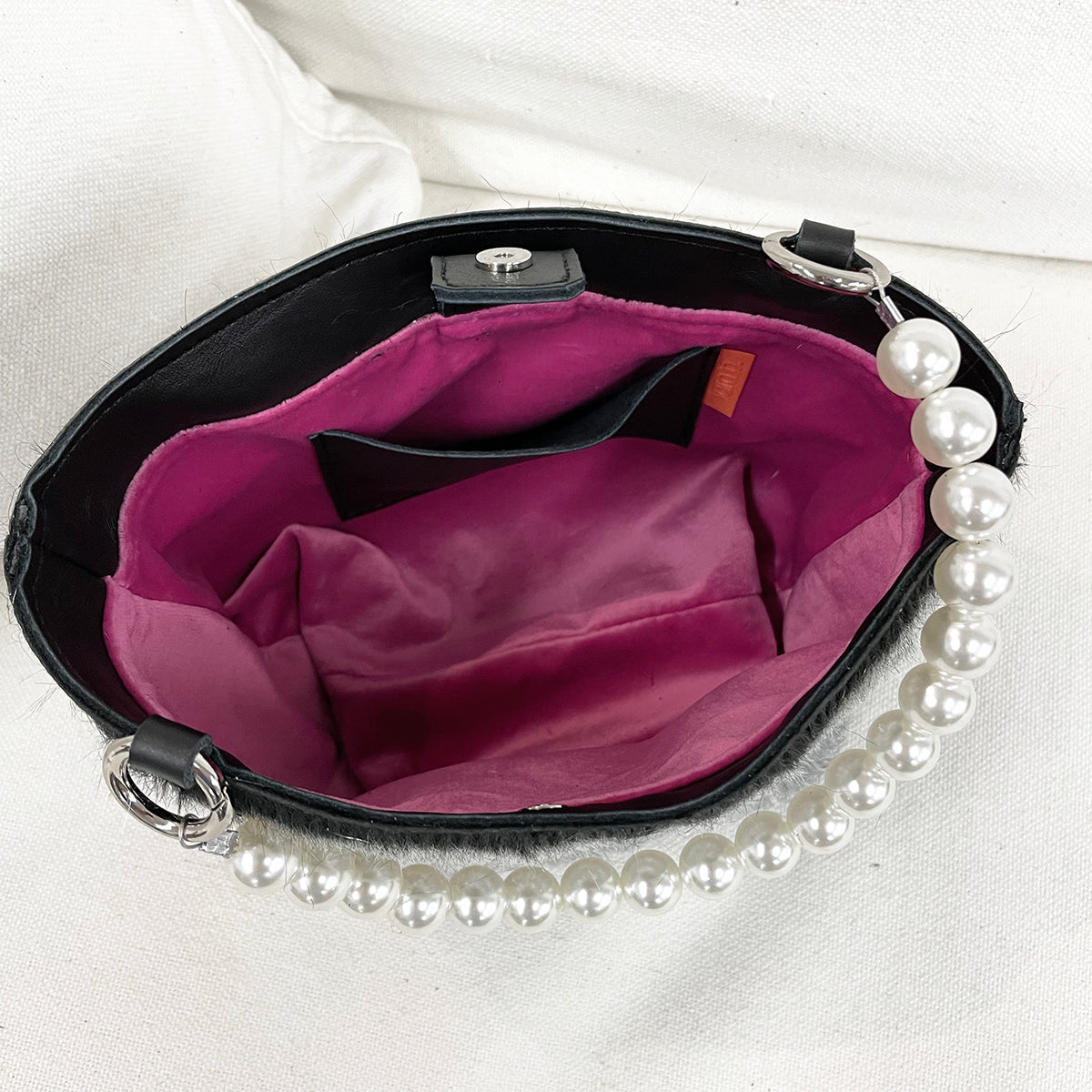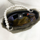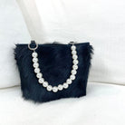 Make a statement and get noticed with the Fiona Mini-Bag! Unique genuine fur bracelet handbag with faux pearl handle. Carry on your arm for hands free or hold in your hand. Fully lined with inner pocket. Fun and versatile to dress up a sleek black dress or dress down w jeans and a simple t-shirt; completing your look on an afternoon or night out - even at a wedding! Holds a cell, money, credit cards, glasses, lipstick, keys.