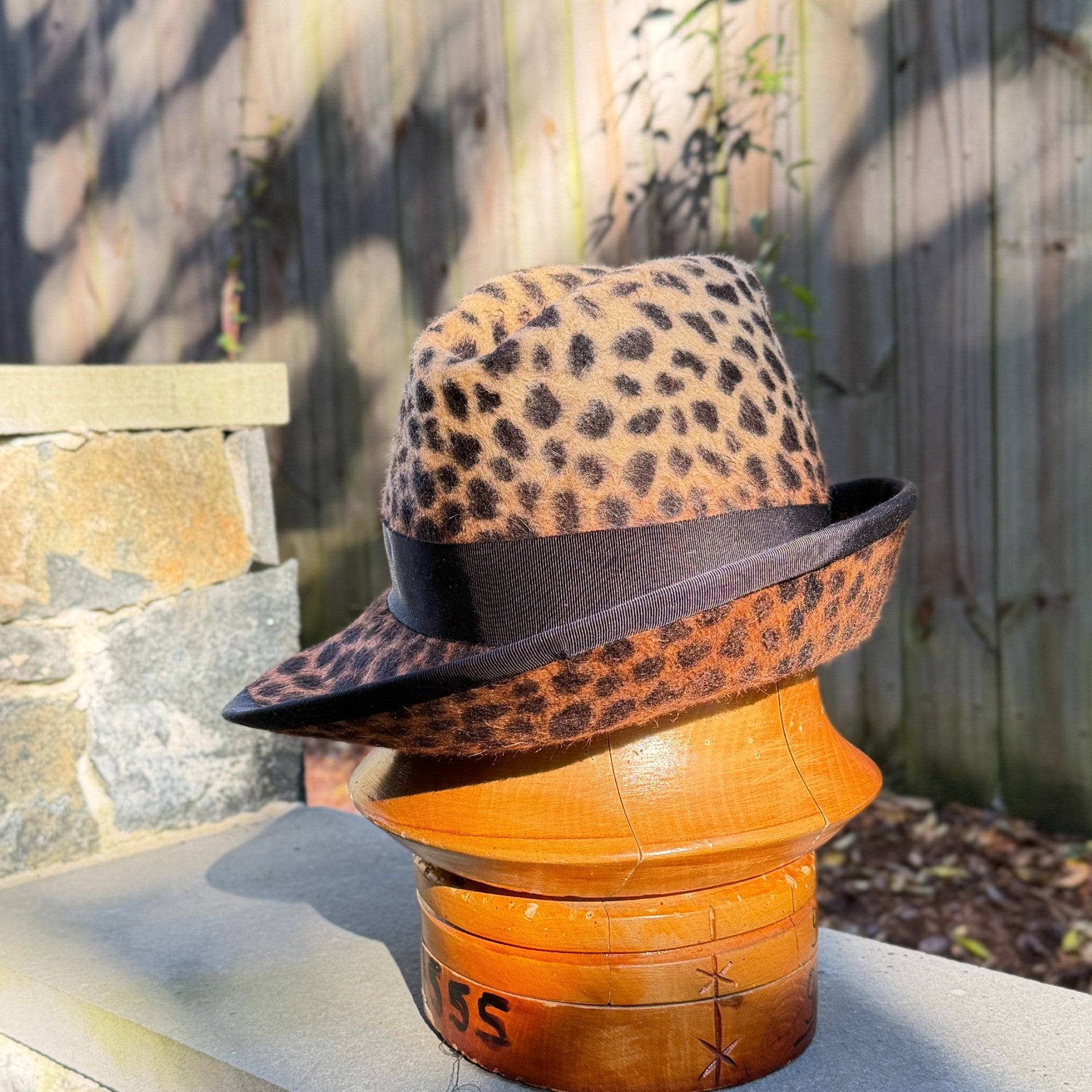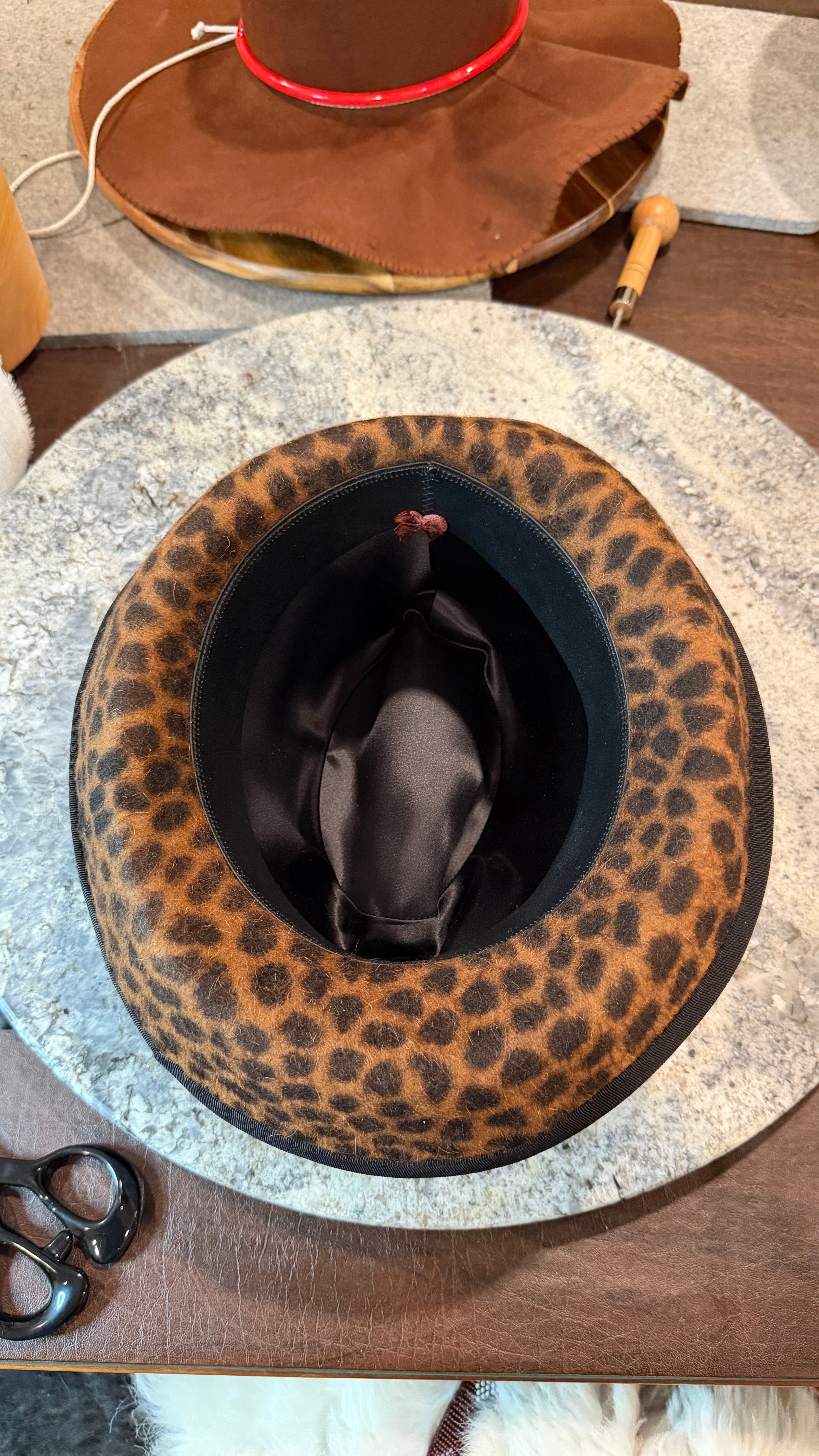 Unleash your wild side with the Savanna Spirit Fedora by Sigil Hats, handmade in Asheville, NC. This bold statement piece features a luxurious cheetah-print fabric with sleek black trim, blending untamed elegance with modern style. Perfect for making an impression at events, festivals, or everyday adventures, the Savanna Spirit Fedora is designed for confident, fashion-forward individuals who embrace their unique flair.